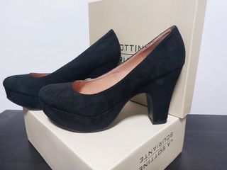 Preciosos zapatos de tacón de ante "La Bottine Souriante" - Color negro, talla 40. - Plataforma. - Estilo elegante y sofisticado. -Usadas en una sola ocasión!