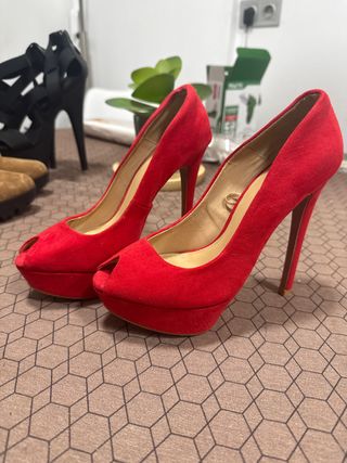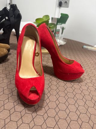 Tacones de plataforma abiertos en la punta. - Material: Ante - Color: Rojo - Talla: 37