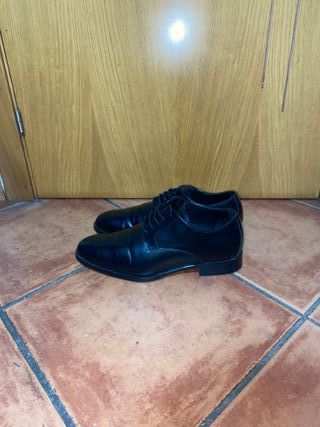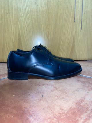 Zapato tipo derby de Zara. Parte superior lisa. Horma redonda. Precio tienda 39,95€ Suela con ligero tacón. - Diseño clásico. - Cierre con cordones. - Suela resistente. Se compraron en un viaje pára una reunión de trabajo y solo se usaron una tarde Bastante comodos