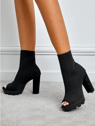 Botas calcetín negras punta abierta tacón grueso