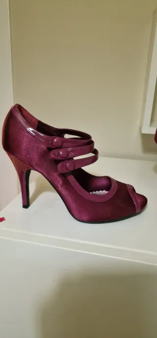 Elegantes zapatos de fiesta. - Diseño abierto en la punta. - Tacón fino y estilizado.