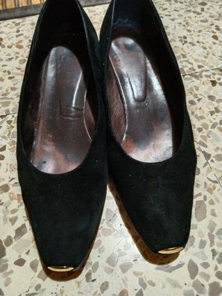 Elegantes zapatos de tacón en ante negro de flamenco, con clavos. Hechos a mano. Talla 36. Tienen algunas marcas de desgaste del ante como se ve en las fotos, pero aún tienen mucho que taconear. - Tacón grueso y cómodo. - Diseño clásico. - Material: Ante.