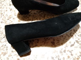 Elegantes zapatos de tacón de ante negro con un lazo de satén en la parte trasera. - Marca: Angel Alarcón - Color: Negro - Material: Ante - Detalle: Lazo de satén en el talón Super cómodos y muy elegantes,sin apenas uso como se ve...22€