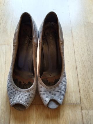 Elegantes zapatos de tacón de ante en un bonito tono gris perla. El diseño es clásico y versátil. - Material exterior de ante. - Tacón de madera con un diseño moderno. - Interior con detalles de la marca Geox.