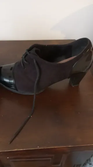 Elegantes zapatos de tacón con diseño de cordones y puntera brillante. - Material exterior de ante. - Detalle de puntera en charol. - Cierre con cordones. Plataforma delantera y tacón de 6 cm.
