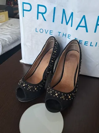 Preciosos zapatos de 9 cm de tacón n.37 con sus cajas originales en perfecto estado con tapas nuevas solo puestos para dos bodas por separado 25euro ,los negros son marca NuriaStyl