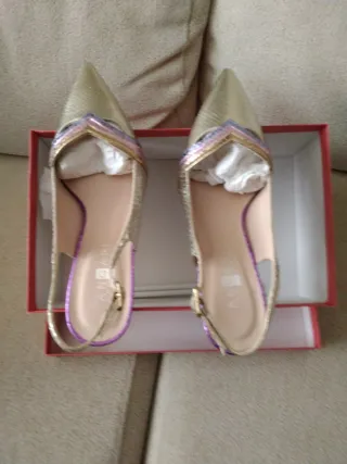 Zapatos de fiesta dorados , morados y rosa