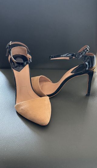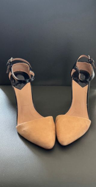 Zapatos de tacón beige y negro STRADIVARIUS.