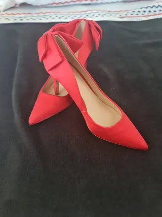 Elegantes zapatos de tacón en color rojo, perfectos para cualquier ocasión especial. Su diseño con lazo añade un toque sofisticado. - Material: Satén - Diseño de punta fina - Detalle de lazo en el talón
