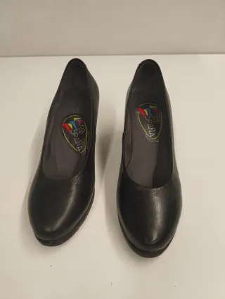 Elegantes zapatos de piel en color negro.muy cómodos y solo usados en un par de ocasiones Tienen una pequeña marca en la parte delantera ,se adjunta fotografía Altura de tacón 6,5 Plantilla interior 24 x 7,5 - Material exterior de piel. - Diseño clásico y versátil. - Marca: Pitillos.