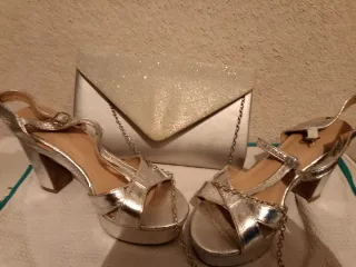 Zapatos plateados y bolso de fiesta