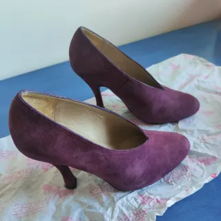 Elegantes zapatos de tacón alto, perfectos para cualquier ocasión. - Material: Ante - Color: Morado - Diseño: Tacón fino y escote en V