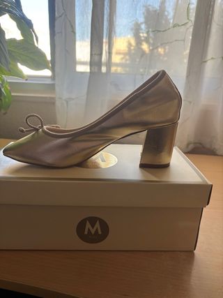 Zapatos de tacón dorados.