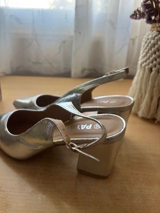 Zapatos dorados.Nuevos. Descubiertos detrás.Tapas