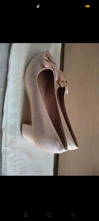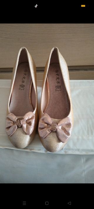 Zapatos niña tacón dorado N 34