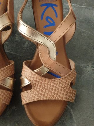 Elegantes zapatos de plataforma para mujer con un diseño moderno. - Tira ajustable en el tobillo. - Plataforma y tacón de efecto madera. - Diseño de tiras en la parte delantera. - Solo se ha usado una vez para una comunión. - Muy cómodos. - La suela no pesa nada.