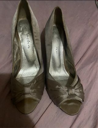 Zapatos de tacón de MaryPaz, número 38, material antelina, en muy buen estado, solo puestos una vez, color caqui.