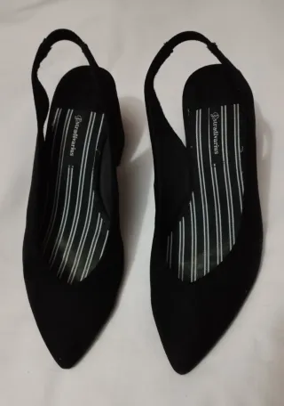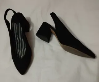 Preciosos zapatos de tacón de la marca Marypaz. Son de color negro y de la talla 36. - Tienen un diseño elegante y sofisticado. - Son de ante, con un acabado suave. - Ideales para cualquier ocasión especial.