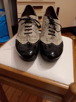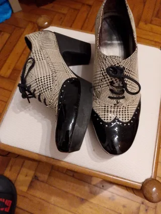 Zapatos de vestir diseño Oxford con tacón,de piel, talla 39,solo puestos en dos ocasiones, impecables.