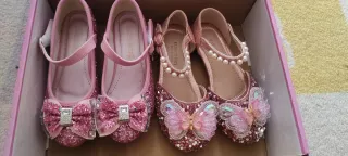 Preciosos zapatos de princesa para niña, talla 28-29. En el zapato indica talla 30 y 31 pero tallan pequeños por eso han quedado casi nuevos Un modelo es plano y otro tiene un poquito de tacon