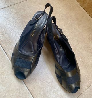 Zapatos que han vivido alguna aventura que otra. Se puede ver en las fotos algunos pequeños desperfectos. Talla bien para una 39. Solo aptos para profesionales del tacón: 12 cm de tacón y 2 cm de plataforma.