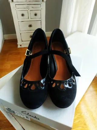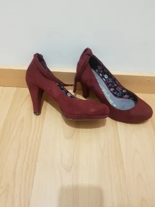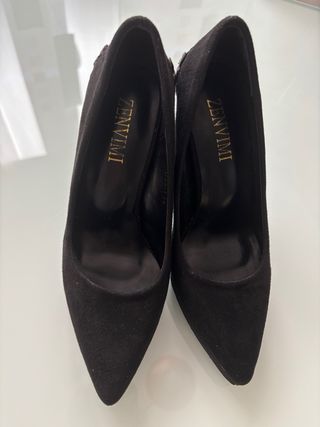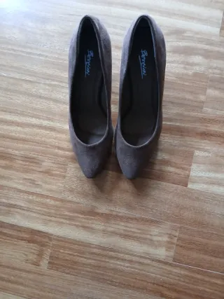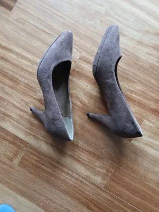 Elegantes zapatos de salón con acabado en ante. - Tacón grueso. - Punta fina. puestos solo una vez precio en tienda 55 euros pone 39 pero es un 39 pequeño