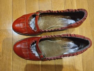 Preciosos zapatos rojos combinando charol y ante, en piel ambos, con un tacón medio. Hebilla dorada, impecable. Aún conservan la etiqueta de la piel en la suela. Son unos zapatos super cómodos, y muy estilizados que sientan genial. Yo no puedo ya llevarlos porque tienen 5 cm de tacón y el medico me recomendó no mas de 3 por mis problemas en la cadera. Cualquier duda, consultame. #zapatos #zapatosmujer #zapatosrojos #zapatosnumero37 #zapatosdepiel #zapatospielmujer37 #zapatosdetacón