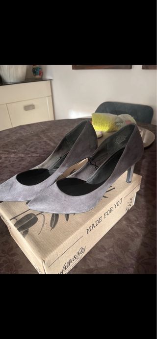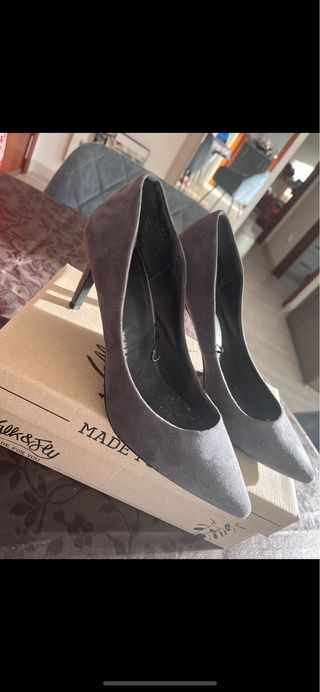 Elegantes zapatos de tacón alto de la marca Walk & Fly. - Color gris. - Diseño de punta fina. - Tacón de aguja.
