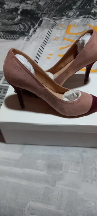 Elegantes zapatos de tacón con un diseño bicolor. - Material exterior de ante. - Punta reforzada en color morado. - Tacón de aguja.