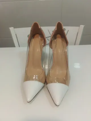 Zapatos de tacón blanco,rosa nude y transparente