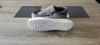 Zapatillas náuticas de color gris, en buen estado. - Son de cuero. - Tienen cordones. - Ideales para el verano.