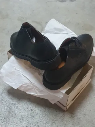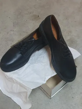 Elegantes zapatos de vestir. - Diseño clásico. - Cierre con cordones. - Suela de goma. Los vendo porque pone que es una talla 40, pero realmente sirve para gente que talla hasta una 41/42