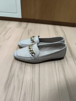 Mocasines beige con cadena dorada