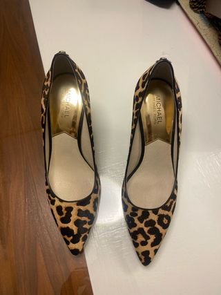 Elegantes zapatos de tacón con estampado de leopardo. - Sin usar, a estrenar. - Verdaderos, comprados en el Corte Ingles - Piel verdadera - Diseño de punta fina. - Tacón de aguja. - Detalle de logo en la plantilla.