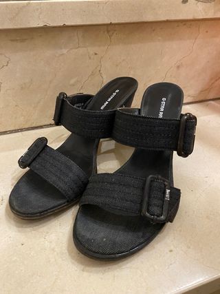 zapatos tacón G-star,tejido vaquero combinado con piel negra.Talla 37