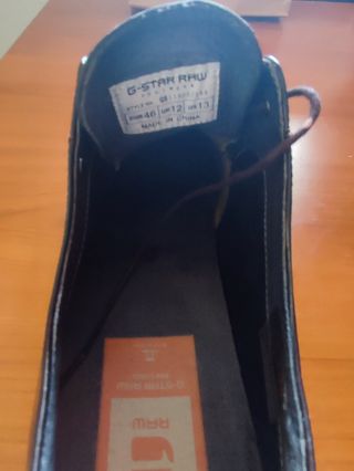 Zapatos marca g-star raw acabados como si fueran vaqueros,no se aprecia la calidad en las fotos..sin apenas uso