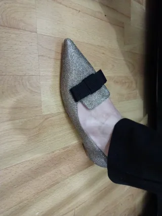 Elegantes zapatos de tacón con un diseño sofisticado. talla 40.5 vale pa un pie de 41 y uno de 40, usado 2 veces - Detalle de lazo con pedrería. - Tira fina con adornos brillantes. - Punta afilada.