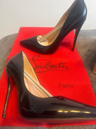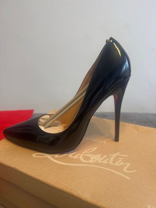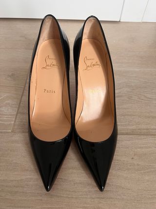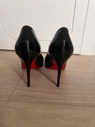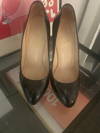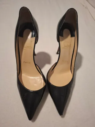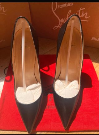 Vendo zapatos originales Christian Louboutin, color negro, con suela roja icónica. ✔️ Color: negro ✔️ Tacón fino elegante ✔️ Material: charol ✔️ Hechos en París Estado bueno, con signos normales de uso visibles sobre todo en la suela (ver fotos). Son muy elegantes, ideales para eventos, cenas o looks formales