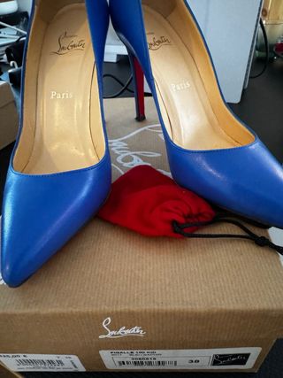 Elegantes tacones Christian Louboutin modelo Kate con tacón de 85mm. Usados una sola vez. Suela en buen estado, interior y puntas impecables. Entrego con: - caja original - protecciones interiores y exteriores - bolsa original - 2 bilsas de tela para viaje - papel de regalo original Louboutin - factura original para poder hacer uso de su garantía en cualquier tienda