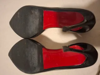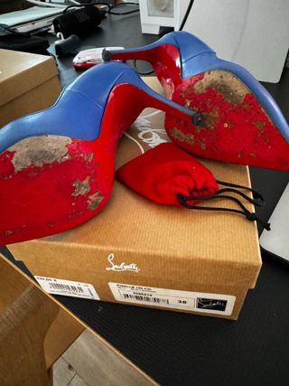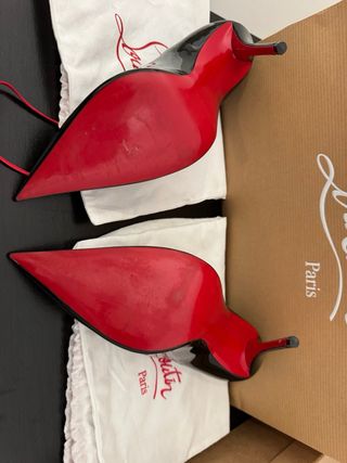 Elegantes zapatos de tacón con el icónico detalle de la suela roja Son auténticos. Oportunidad de tener unos de los zapatos más iconicos de sexo en New York...ojo que están tocados con algunas raspaduras,los veo más como adornos o una oportunidad de restaurar esta joya... de ahí su precio simbólico....