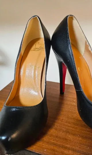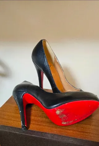 Elegantes zapatos de tacón Christian Louboutin. - Material: Cuero. - Color: Negro. - Talla: 36.5 Usado como se puede ver en las imagenes pero en muy buen estado el Cuero. Se entrega con la bolsa roja en la que vienen y posibilidad de envío. Precio Negociable.