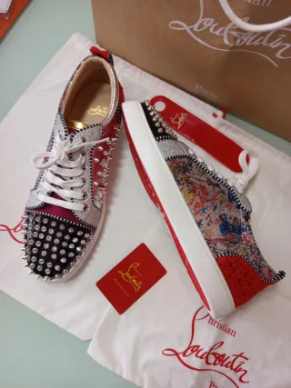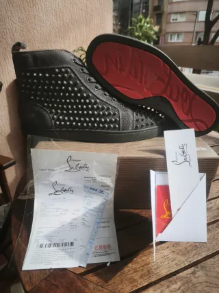 Vendo mis Christian Louboutin modelo Lou Spikes ORIGINALES. Son unas zapatillas espectaculares que no pasan desapercibidas, pero las vendo porque no las uso tanto como me gustaría. 💎 Estado: Impecable (9.5/10) Están prácticamente nuevas. Las he usado literalmente en 4 ocasiones contadas. La piel/ante exterior está perfecta, sin roces ni marcas. Todos los spikes (pinchos) están intactos y en su sitio. El interior está limpio y sin desgaste. La suela roja tiene el desgaste mínimo y normal de haber pisado la calle esas 4 veces. Incluso la platilla mantiene el logo intacto. ✅ Autenticidad 100% Garantizada Son totalmente originales.
