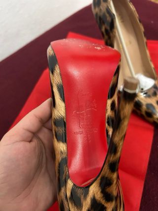 Elegantes zapatos de tacón Christian Louboutin. - Diseño de leopardo. - Suela roja icónica. - Hechos en Italia. - Tacón 6 cm
