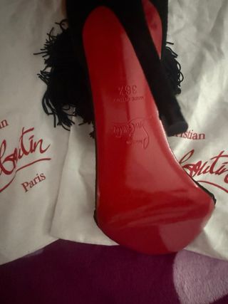 Dato: Los Louboutin tallan media talla mas pequeña de lo normal. Yo normalmete uso la talla 38. Elegantes tacones Christian Louboutin Miss Z 100. - Tacón de aguja 10 cm. - Es el nuevo modelo: Presenta una nueva suela 'Everlasting Red' gracias a una innovadora técnica de recubrimiento que garantiza la resistencia y la vitalidad duradera de nuestro distintivo rojo Louboutin. Así que no te preocupes, la suela roja no se irá nunca. Precio en tienda 845€ COMPLETAMETE NUEVOS. Con caja, bolsa, protector de zapatos, etc. Lo vendo tal cual me lo vendieron en tienda. Me los he puesto 2 veces – los vendo porque necesito el dinero.