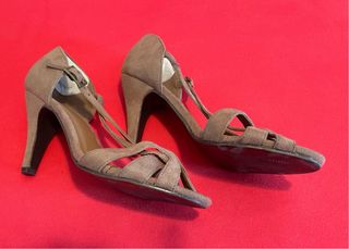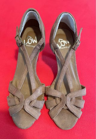 Elegantes zapatos Marypaz de piel y ante. - Talla 36.5. - Color marrón pardo. - Diseño con tiras cruzadas y cierre de hebilla. - Tacón 7 cm alto. - Mas cositas bonitas y baratas en mi perfil.
