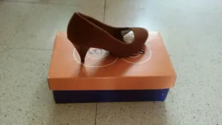 zapatos marrones de tacón con un poquito de plataforma. sin estrenar