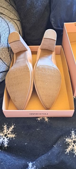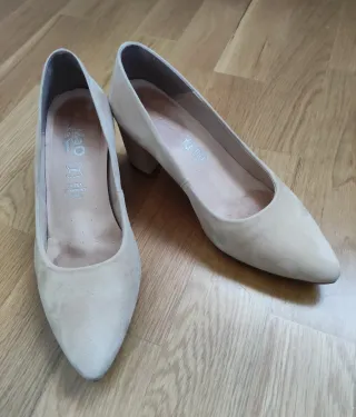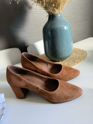 Elegantes zapatos de salón de ante. Comodísimo con plantilla de gel y tacón grueso de 6 cm Con poquísimo uso, están como nuevos
