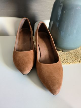 zapatos bajos MiMao modelo Marie color camel talla 38, como nuevos, solo los he usado 3 veces. Los vendo porque me quedan justos de talla. Envío o recogida en barrio Santa Eugenia, Madrid.