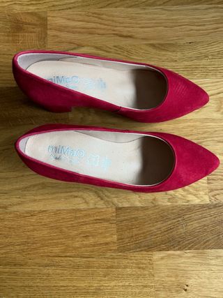 talla 38, zapatos cómodos de piel, puestos en una ocasion, rojos Mimao, cuestan 89 € en la web, los vendo porque no los uso
