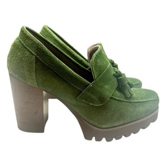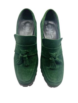Preciosos zapatos de mujer miMao de ante verde, talla 38. Tienen un tacón de 5cm. Se encuentran en muy buen estado. - Fabricados en ante. - Diseño de mocasín. - Tacón bloque.